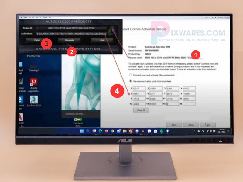 Bước 5: Trên phần mềm 3Ds Max, các bạn copy đoạn Request Code rồi dán vào ô tương ứng trong keygen.
