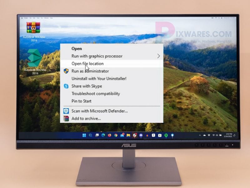 Bước 2: Tiếp theo, các bạn ra ngoài màn hình desktop, tìm biểu tượng 3Ds Max 2016, nhấp chuột phải rồi chọn Open file location để mở đúng thư mục cài đặt phần mềm.