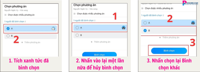 Bước 5: Nếu muốn chọn phương án khác, nhấn vào phương án mới rồi nhấn Bình chọn để hoàn thành thao tác.