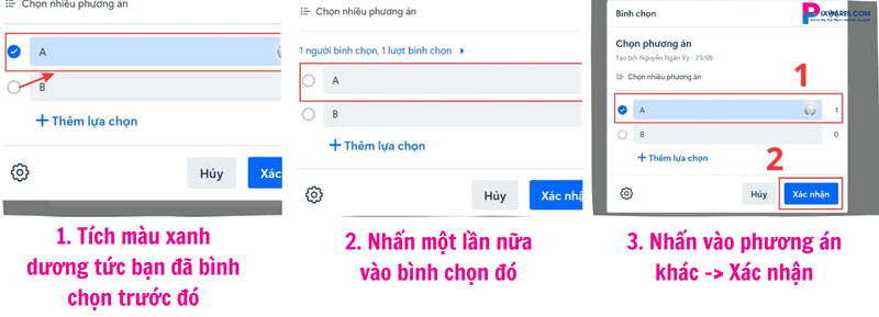 Bước 5: Lựa chọn đã bình chọn trước sẽ có dấu tích màu xanh dương. Nhấn vào đó để hủy chọn.