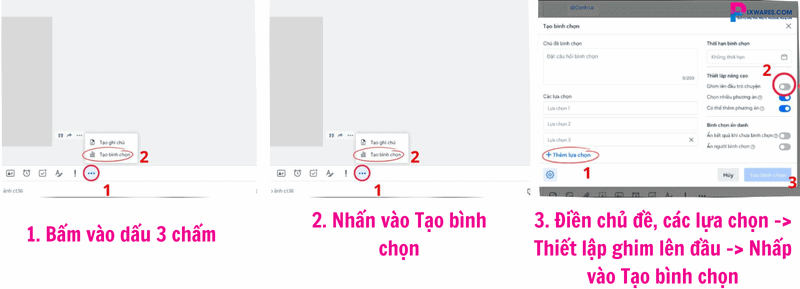 Sau khi nhập xong nội dung bình chọn, bạn có thể thiết lập thêm các tùy chọn để phù hợp với nhu cầu của nhóm: