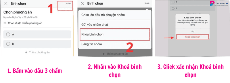 Sau khi tạo bình chọn, nếu bạn muốn khóa bình chọn để không ai có thể thay đổi hay tiếp tục bình chọn, hãy làm theo các bước sau: