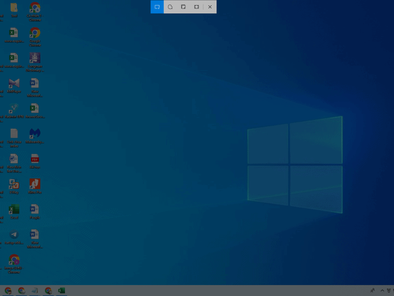 Bước 3: Ngay sau đó, màn hình sẽ tối lại, và bạn sẽ thấy một thanh công cụ nhỏ ở phía trên với các tùy chọn chụp ảnh như sau: