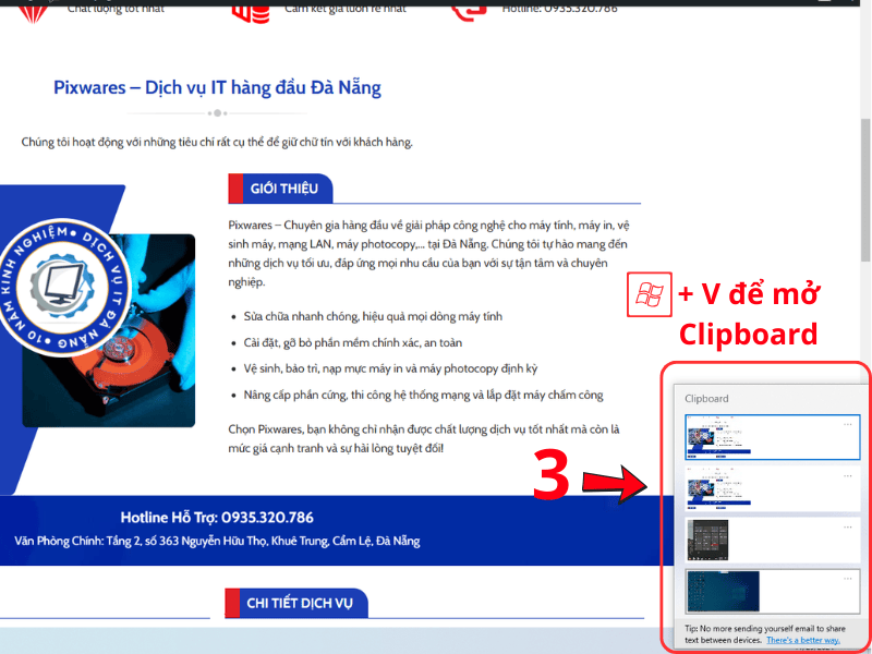 Bước 4: Ảnh chụp sẽ tự động được sao chép vào Clipboard và bạn mở Clipboard bằng cách nhấn tổ hợp phím Windows + V. Bạn có thể dán ảnh vào một phần mềm chỉnh sửa ảnh như Paint để lưu lại.