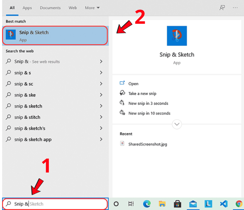 Để sử dụng, bạn chỉ cần tìm từ khóa Snip & Sketch trong thanh tìm kiếm ứng dụng. Bạn cũng có thể ghim công cụ này vào thanh taskbar để dễ dàng truy cập nếu thường xuyên chụp ảnh màn hình.