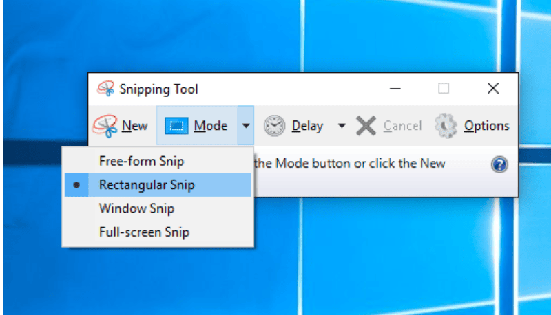 - Rectangular Snip: Kéo chuột để chọn vùng chữ nhật bạn muốn chụp và nhấn tổ hợp phím Ctrl + C.
