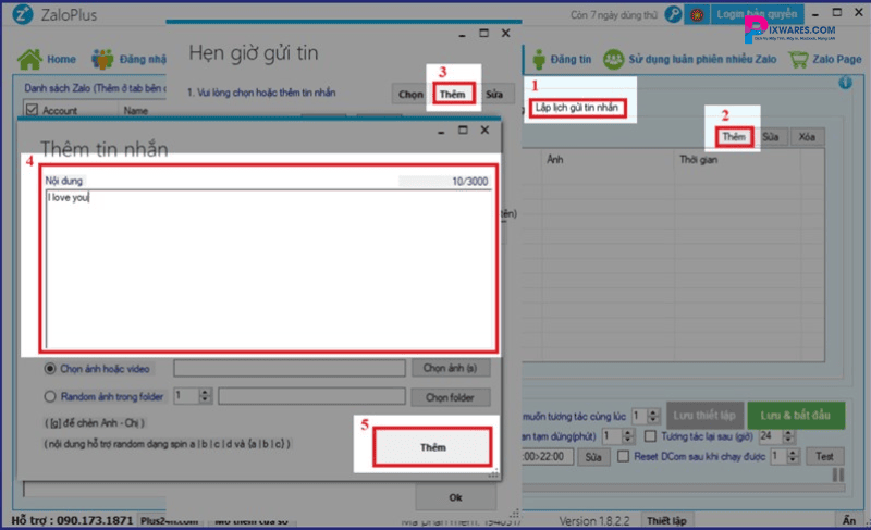 Bước 4: Sau khi danh sách đã được cập nhật, bạn bấm vào Thêm, một cửa sổ mới sẽ xuất hiện để bạn nhập nội dung tin nhắn. Bạn có thể viết bất kỳ nội dung nào mà bạn muốn gửi đi vào một thời điểm cụ thể. Nếu cần, bạn có thể thêm ảnh hoặc tệp đính kèm vào tin nhắn.