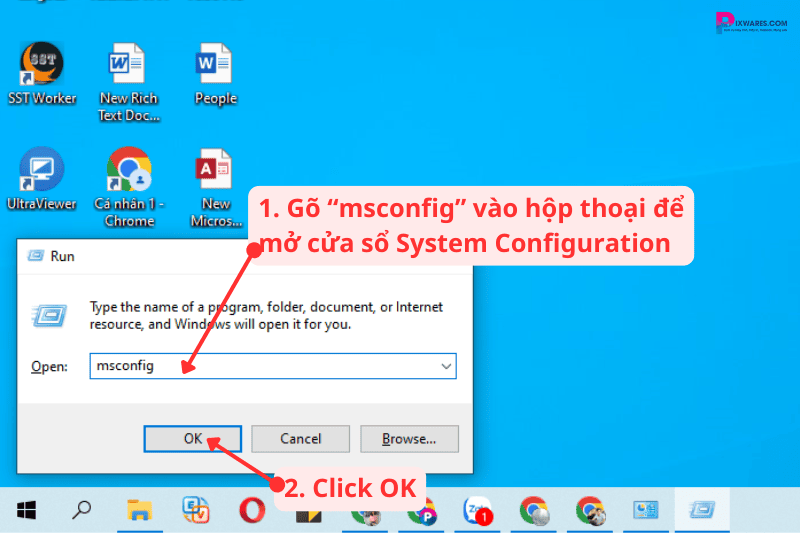1. Nhấn tổ hợp phím Windows + R để mở hộp thoại Run > Nhập lệnh msconfig và nhấn Enter để mở cửa sổ System Configuration.