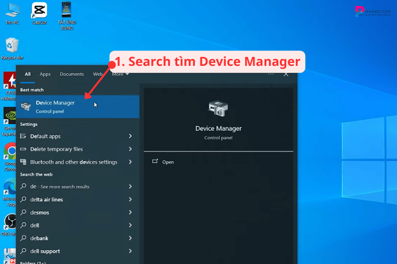 1. Nhập Device Manager vào thanh tìm kiếm và mở công cụ này.