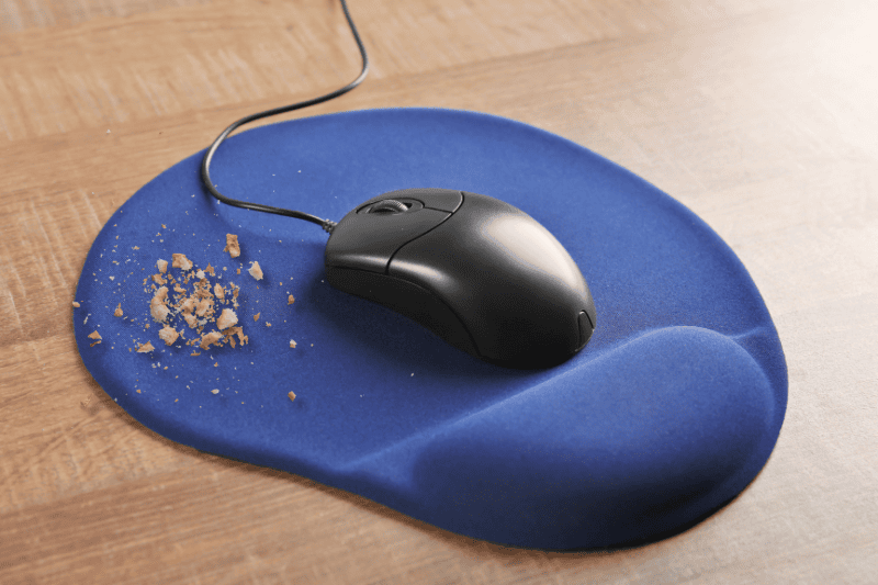 Chúng ta sẽ kiểm tra cái bàn di chuột và hãy đảm bảo bàn di chuột của bạn luôn sạch sẽ, phẳng phiu và không có bụi bẩn, mảnh vụn, hoặc vết bám như thức ăn. Nếu bề mặt bàn di quá bẩn hoặc dính, điều này có thể ảnh hưởng đến mắt laser của chuột, làm giảm độ chính xác và hiệu quả khi sử dụng.