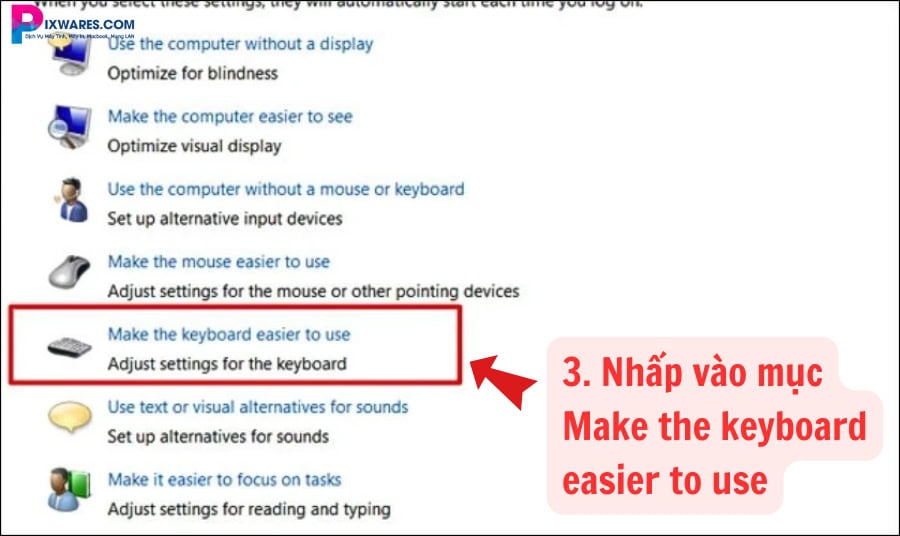 Bước 3: Nhấp vào mục Make the keyboard easier to use