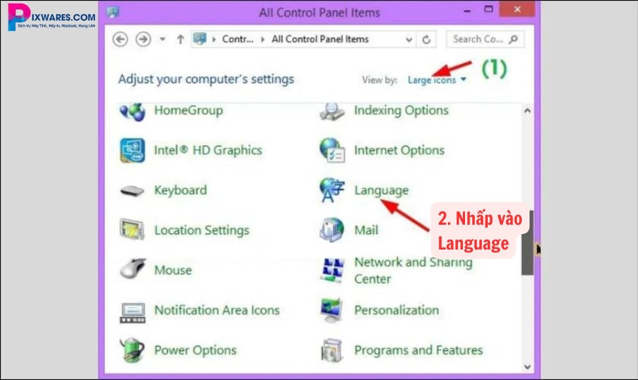 Bước 3: Trong menu bên trái, nhấn vào Language (hoặc “Language & Region” tùy phiên bản Windows)