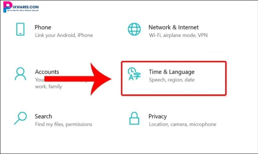 Bước 2: Chọn mục Time & Language