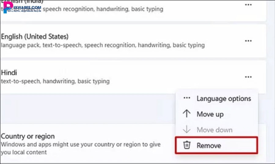 Bước 5: Nhấn nút Remove để xóa ngôn ngữ Vietnamese khỏi hệ thống