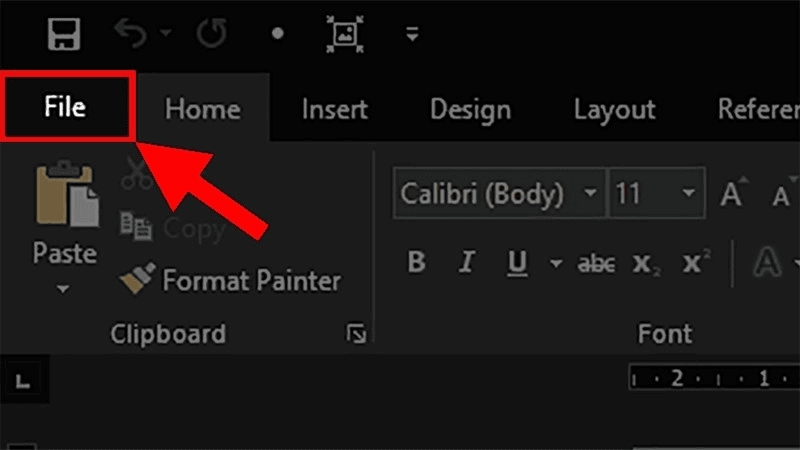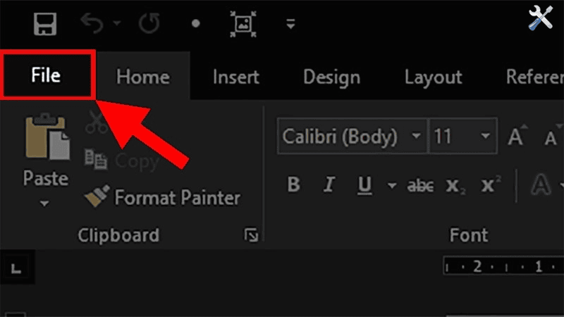 Nếu bạn đang sử dụng Word các phiên bản như 2010, 2013, 2016 hoặc 2019 thì đầu tiên hãy mở file Word bị lỗi dính chữ. Khi file đã mở, nhìn lên thanh menu ở phía trên, bạn nhấn chọn mục File để bắt đầu nhé!