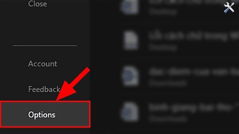 Sau khi nhấn vào File, bạn sẽ thấy một danh sách menu xuất hiện ở bên trái màn hình. Lúc này, hãy tìm và bấm vào mục Options để mở cửa sổ thiết lập.