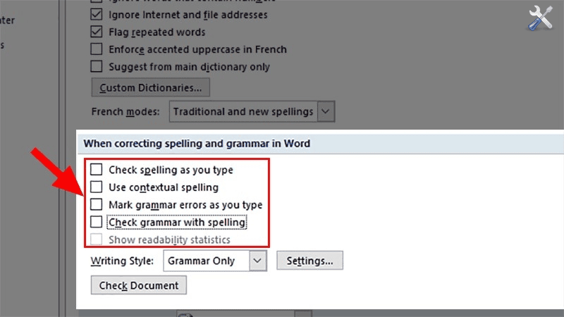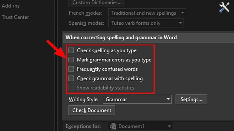 3. Tắt Các Tùy Chọn Kiểm Tra Chính Tả và Ngữ Pháp