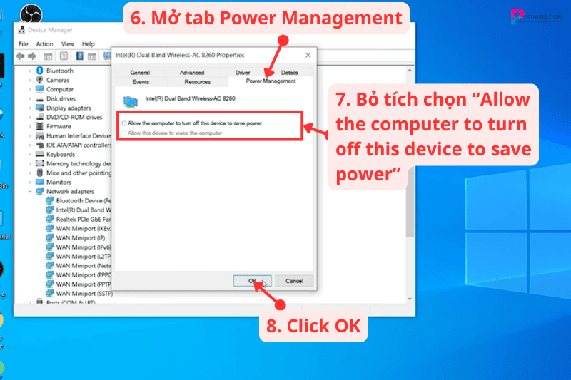 Việc cấu hình lại Power Management là một giải pháp quan trọng để khắc phục tình trạng Wi-Fi bị ngắt kết nối do máy tính tự động tắt thiết bị để tiết kiệm năng lượng. Dưới đây là hướng dẫn chi tiết: