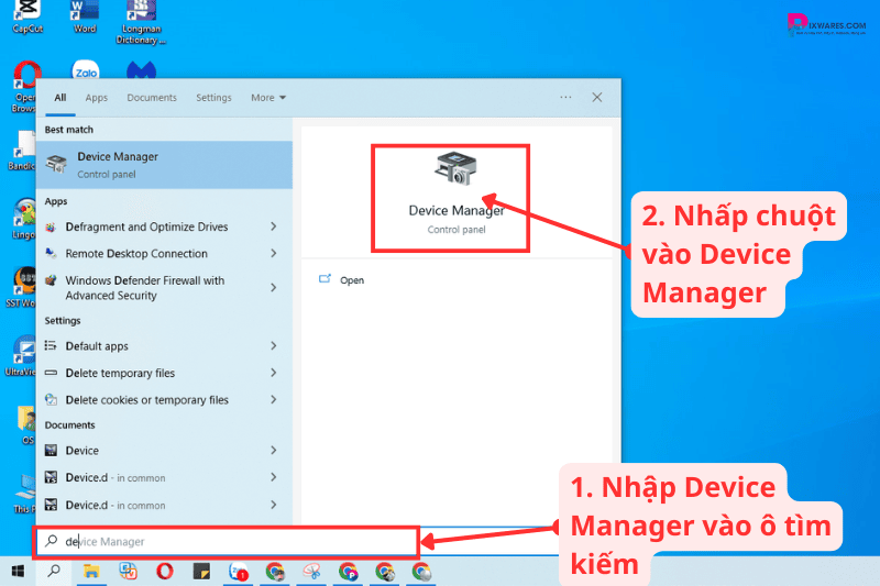 Bước 1: Nhập Device Manager vào ô tìm kiếm trên Taskbar, sau đó nhấp chuột vào để mở Device Manager.