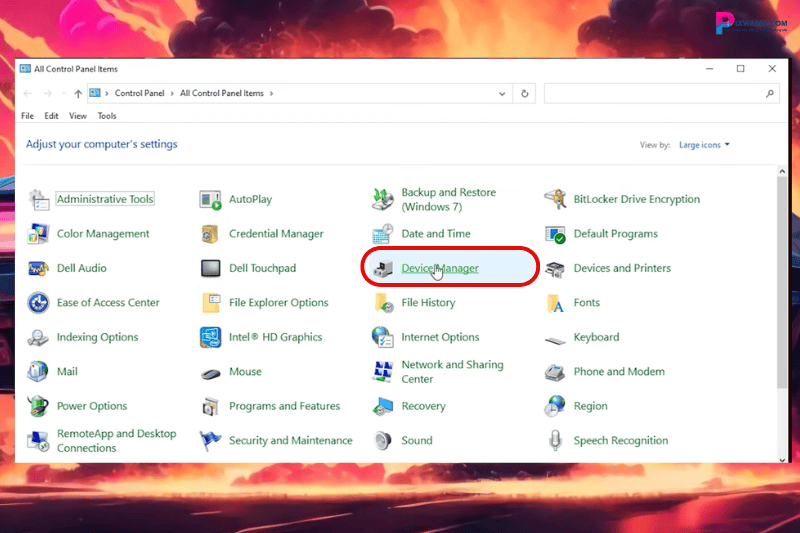 Bước 1: Ở màn hình desktop, bạn vào Start Menu và mở Control Panel. Trong tab Control Panel, tìm đến công cụ Device Manager.
