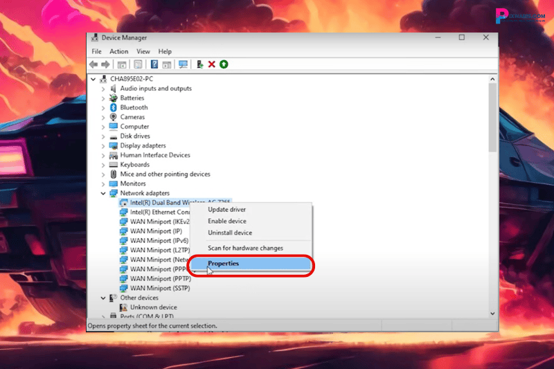 Bước 4: Để driver hoạt động ổn định nhất, mình sẽ hướng dẫn các bạn cách cập nhật driver Wi-Fi lên phiên bản mới nhất để tránh phát sinh thêm lỗi nhé. Đầu tiên, nhấp chuột phải vào driver và chọn Properties.