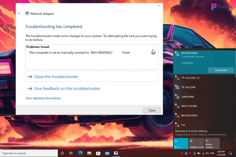 Bước 4: Sau đó, bạn sẽ thấy thông báo rằng sự cố đã được khắc phục thành công. Driver Wi-Fi bị ẩn đã được sửa.