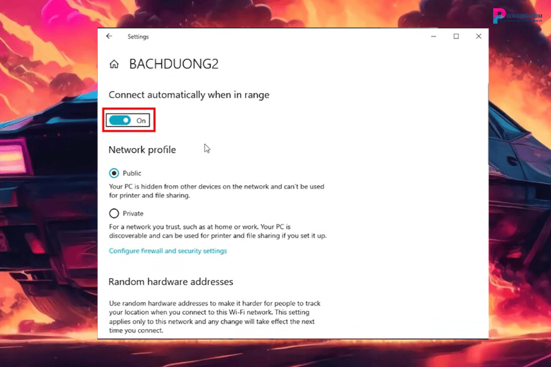 Bước 3: Nếu như trình sửa lỗi không giải quyết được lỗi này, bạn vẫn có thể tự mình thiết lập bằng cách nhấp vào biểu tượng Wi-Fi và nhấp chuột trái vào Wi-Fi đang sử dụng. Ở mục Properties, chú ý ở mục “Connect automatically when in range.” Nếu trạng thái đang bị Off, thì hãy nhấp vào để mở lên ở chế độ On để PC tự động kết nối với Wi-Fi này cho những lần sau khi ở trong phạm vi.