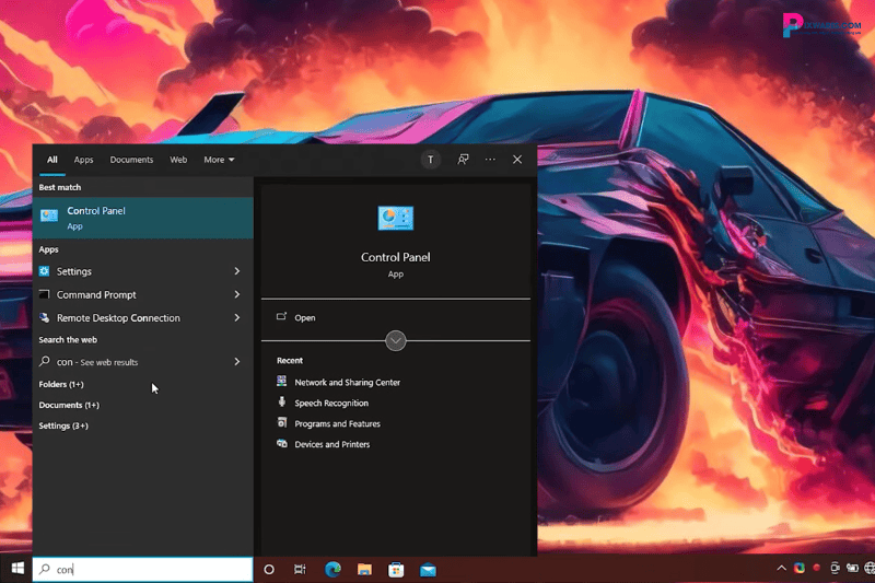 Mở Control Panel bằng cách search ứng dụng trong ô tìm kiếm Type here to search