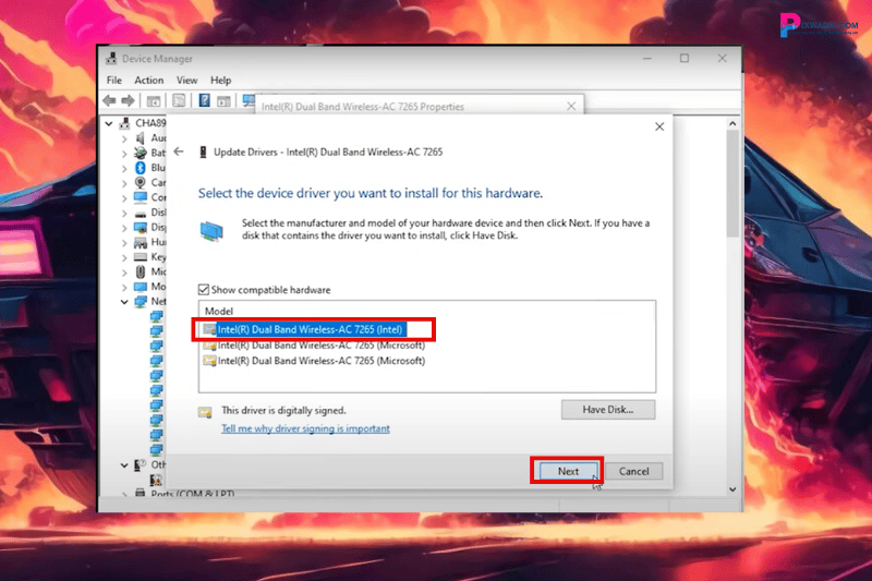 Tiếp theo chọn driver Intel Dual Wireless của Intel vì driver cũ của mình cũng của Intel.