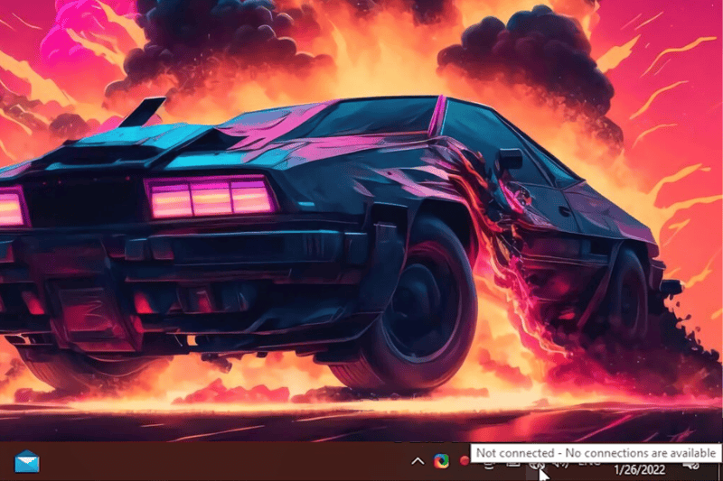 Sau đó, để nhận biết lỗi này cũng khá đơn giản. Bạn sẽ chú ý ở biểu tượng Wi-Fi; thường ngày nó sẽ biến thành hình quả cầu với hình tròn gạch chéo. Khi rê chuột vào biểu tượng, sẽ có dòng chữ “Not Connected.”