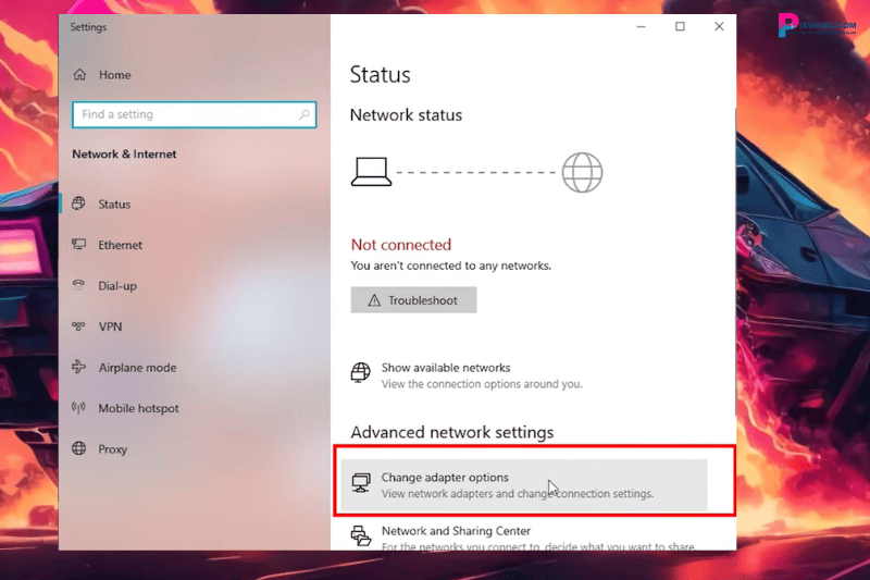 Tiếp tục nhấn vào “Change adapter options” để kiểm tra tiếp.
