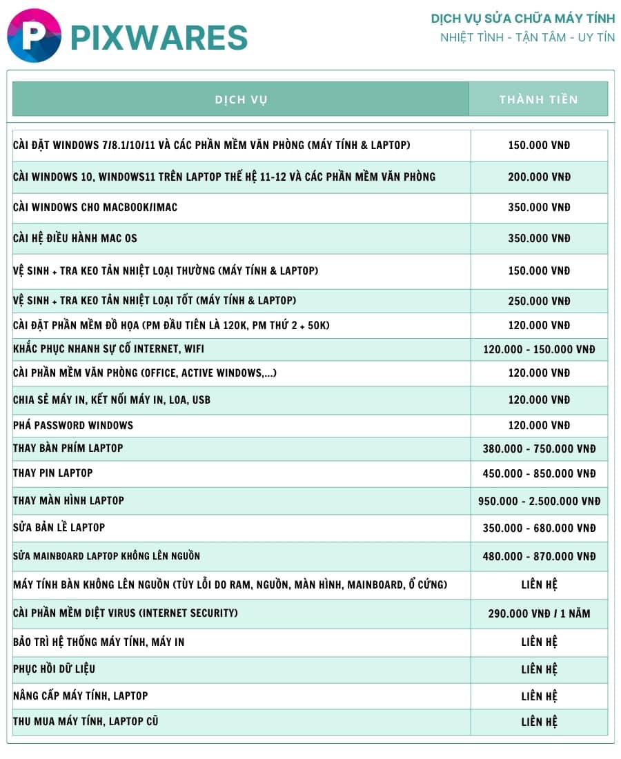 Sửa máy tính uy tín đà nẵng Pixwares cam kết mang đến dịch vụ chất lượng với mức giá hợp lý cho từng khách hàng cá nhân và văn phòng công ty.