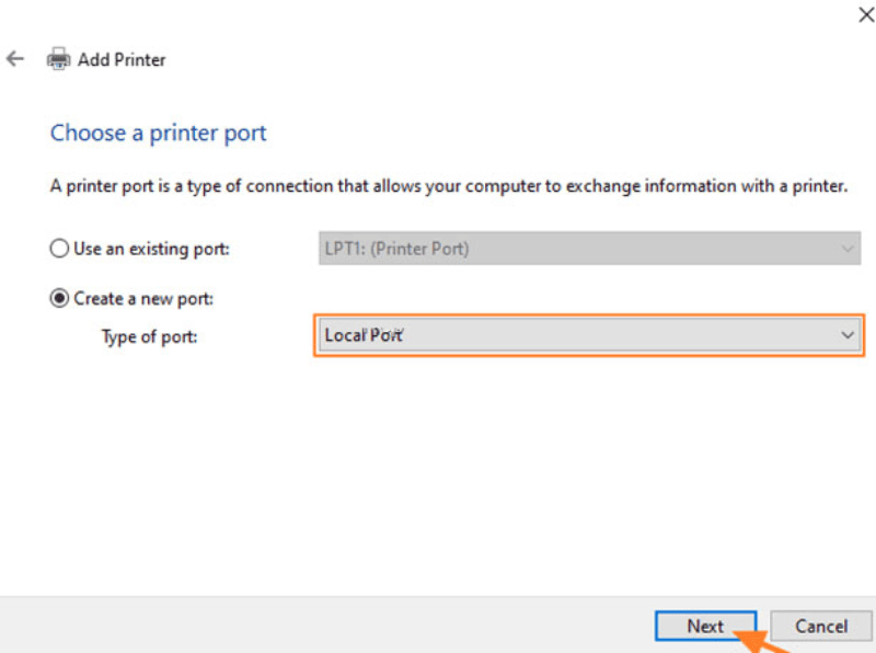 Phương pháp 2: Thêm máy in mạng bằng cổng cục bộ