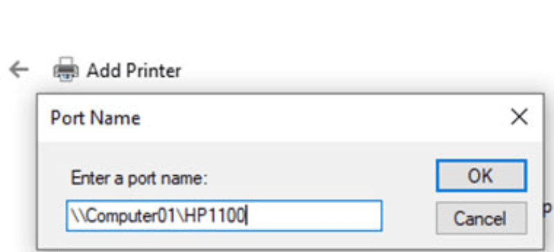 - Nếu máy tính có tên “Computer01” và máy in tên “HP1100”, bạn nhập: