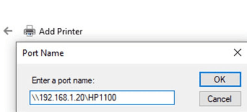 - Nếu máy tính có IP là “192.168.1.20” và máy in tên “HP1100”, bạn nhập: