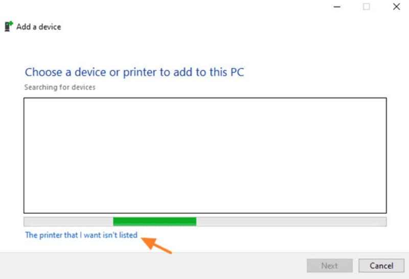 - Khi hệ thống không tìm thấy máy in, chọn The printer that I want isn’t listed.