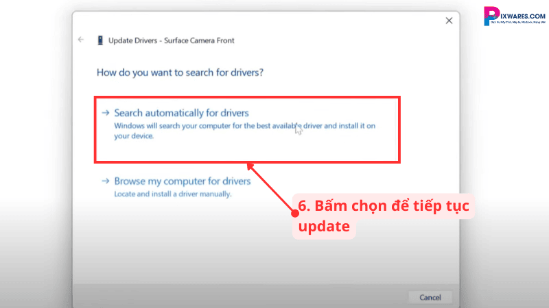 Một bảng thông báo hiện ra, bạn hãy bấm chọn vào “Search automatically for drivers” để tiếp tục việc update divers.