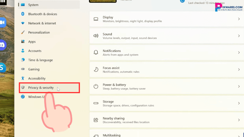 Đôi khi, lỗi này có thể do cài đặt quyền riêng tư của camera. Để kiểm tra, bạn mở cài đặt máy lên, chọn “Privacy & Security“.