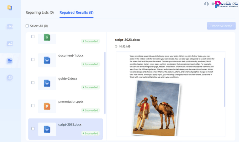 Nếu quá trình Repair không thành công, bạn có thể thử tùy chọn Extract Data để trích xuất dữ liệu từ file.