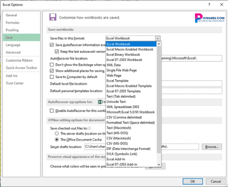 3. Tìm mục Lưu sổ làm việc (Save Workbooks) trong phần cài đặt.