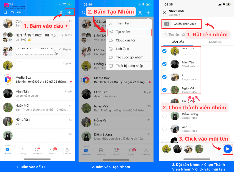Cách 1: Tạo nhóm trực tiếp từ giao diện Tin nhắn